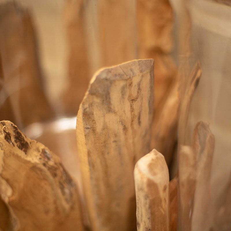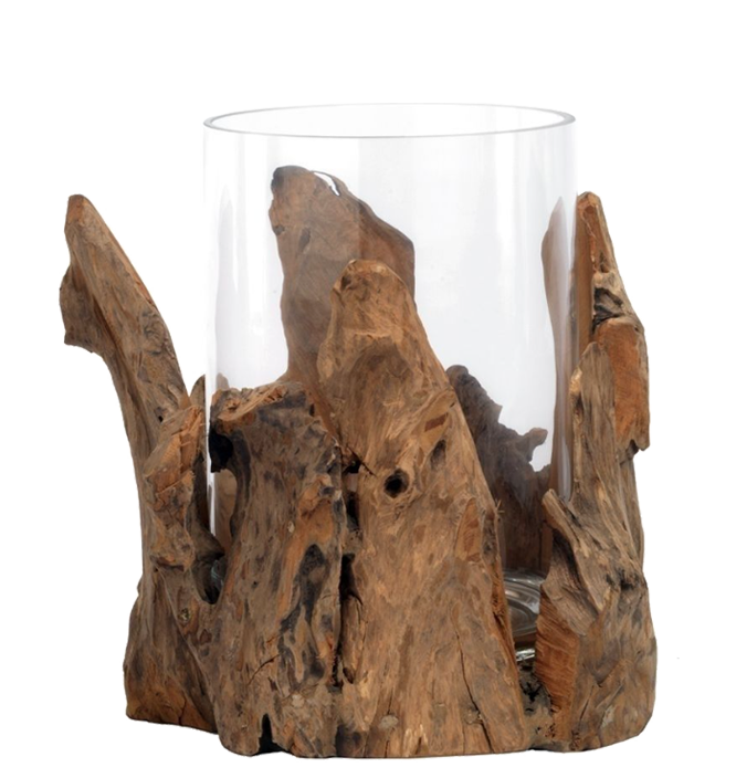 Jarra ou Porta velas em Madeira Natural de Teca com vidro