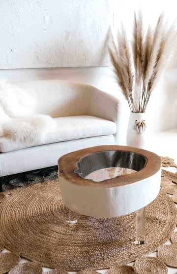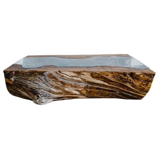 Mesa de Jantar em Raíz de Acácia da Austrália e tampo de vidro