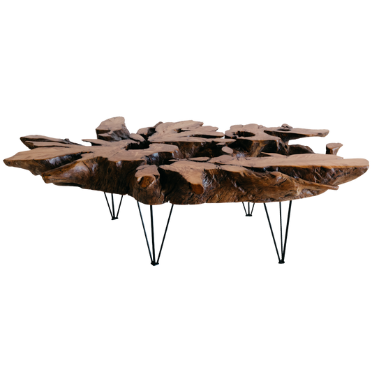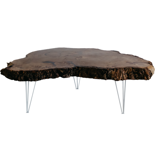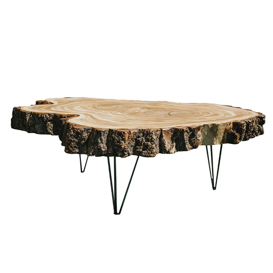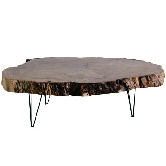 Mesa de Centro em madeira de Ulmeiro e pés em ferro