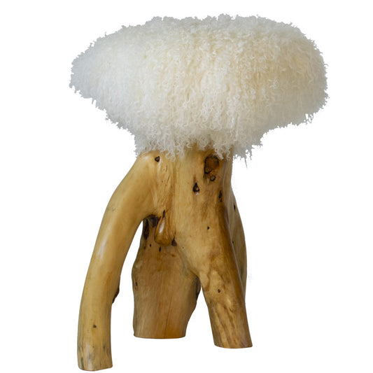 Banco em Madeira Natural de Cedro com tampo em pêlo de cabra do Tibete