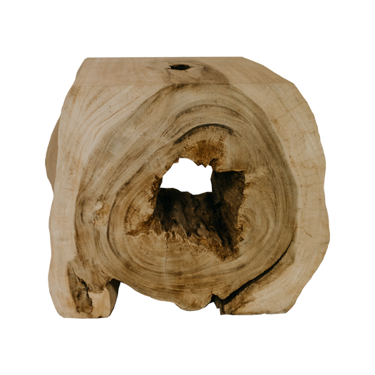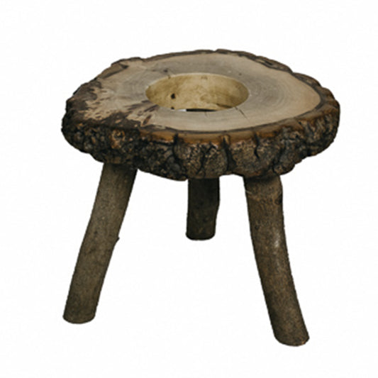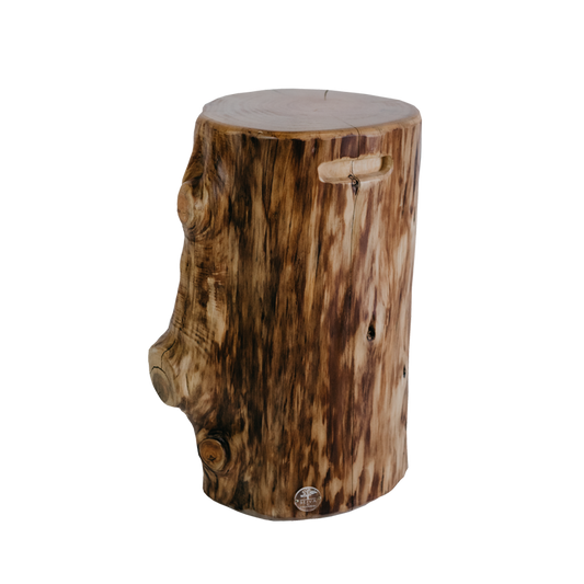 Banco Circulo em Madeira Natural de Acácia; Dupla função: Banco ou Mesa de Apoio.