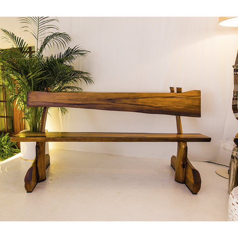 Banco em Madeira Natural de Ulmeiro, pés em Cedro.