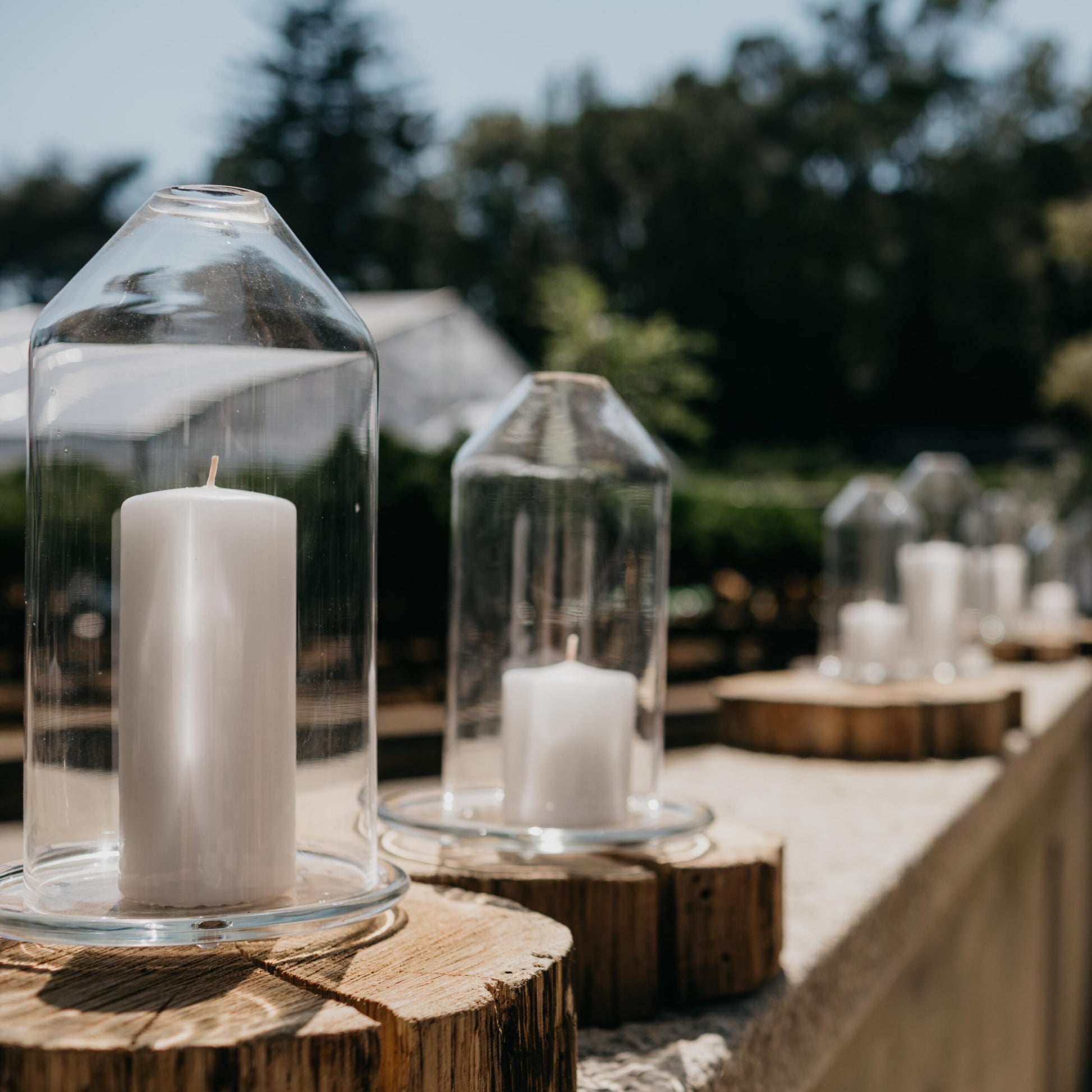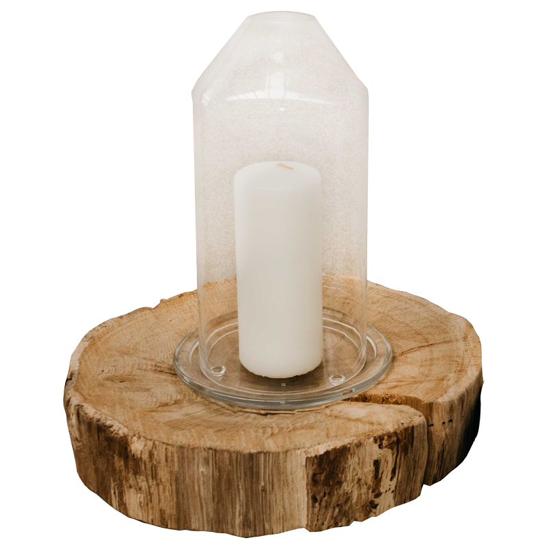 Porta velas em vidro com base em madeira - Grande
