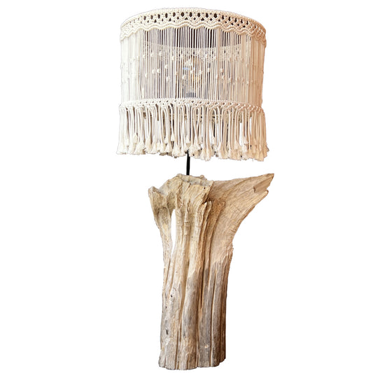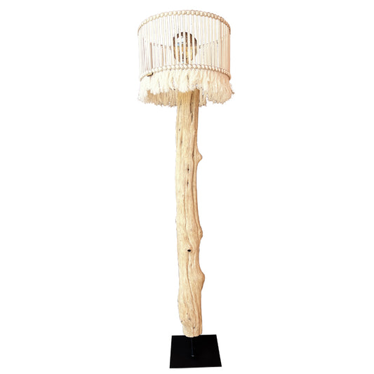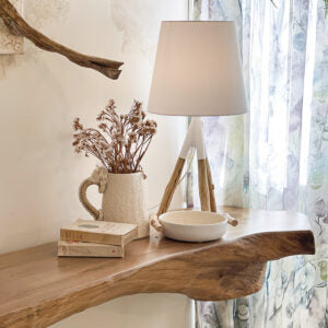 Candeeiro em Madeira Natural Pseudo Plátano, com Iluminação, com Abat Jour em Algodão