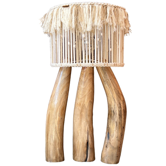 Candeeiro em Madeira Natural, com pintura personalizada e fio em macramé