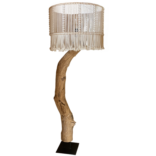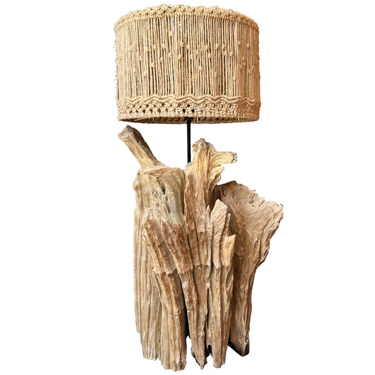 Candeeiro em Madeira Natural Teca, com Abata Jour Serenity em Juta