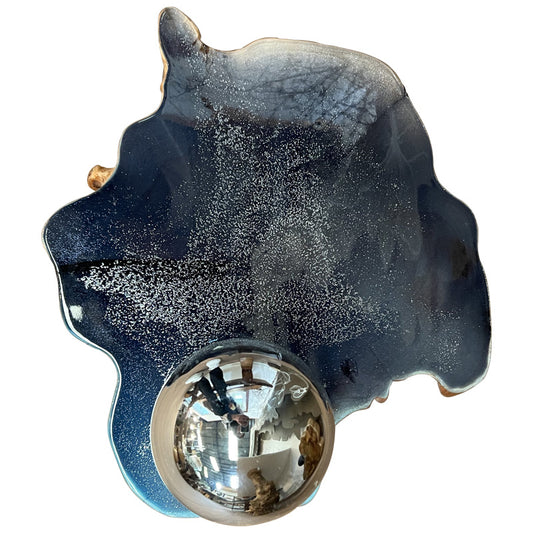 Aplique de Parede em  Madeira Natural de Cedro com Resina e Pigmentos Prata em Lua