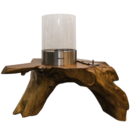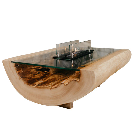 Mesa de Centro em Madeira Natural de Plátano, com Lareira de Bioetanol