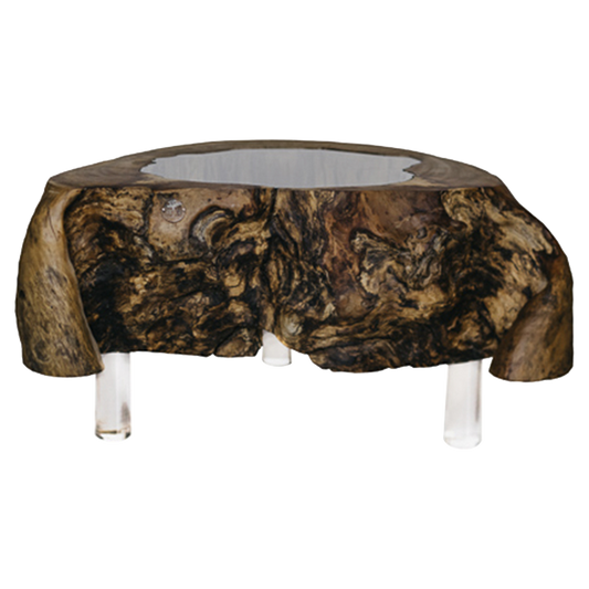 Mesa de Apoio em Madeira Natural de Cedro; Resina e velatura; Pés em acrílico com...