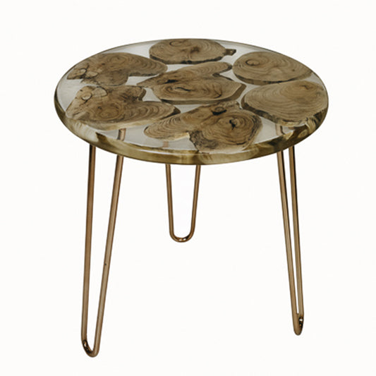 Mesa de Apoio em Resina e Madeira de Cedro, com pés em cobre
