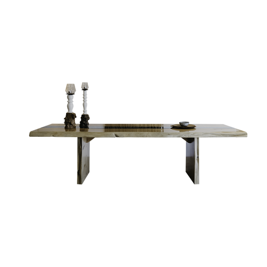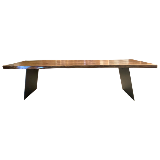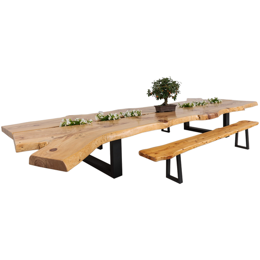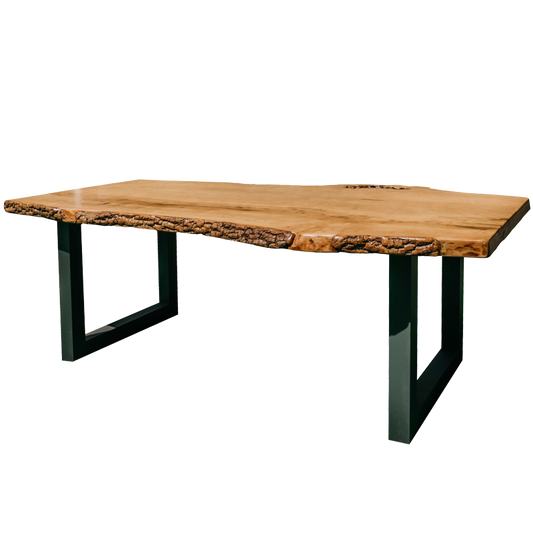 Mesa de Jantar em Madeira Maciça de Freixo com casca e pés em metal preto