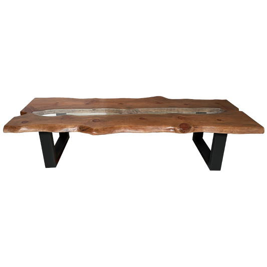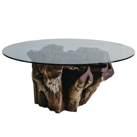 Mesa de Jantar em Raíz de Acácia da Austrália e tampo de vidro