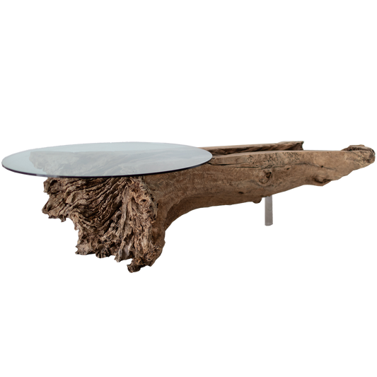 Mesa de Jantar em Raíz de Diadora com tampo de vidro