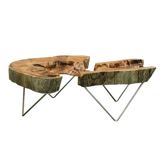 Mesa de Centro em Madeira Maciça de Cedro, com formas irregulares e pés em metal...