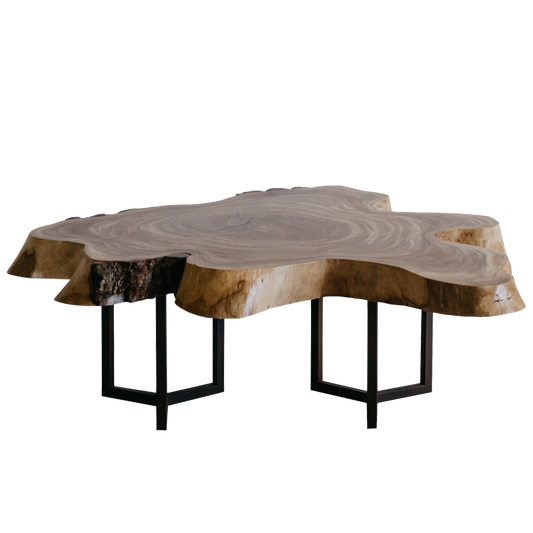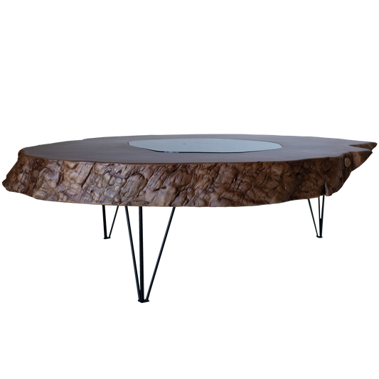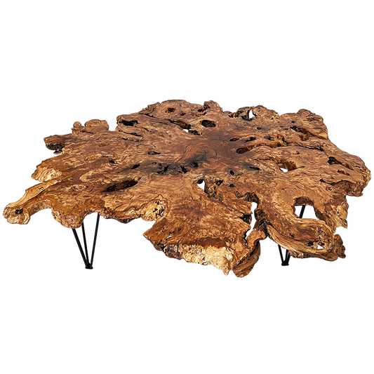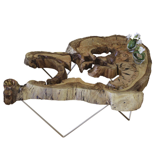 Mesa de Centro em Raíz de Oliveira e Pés em Metal Preto