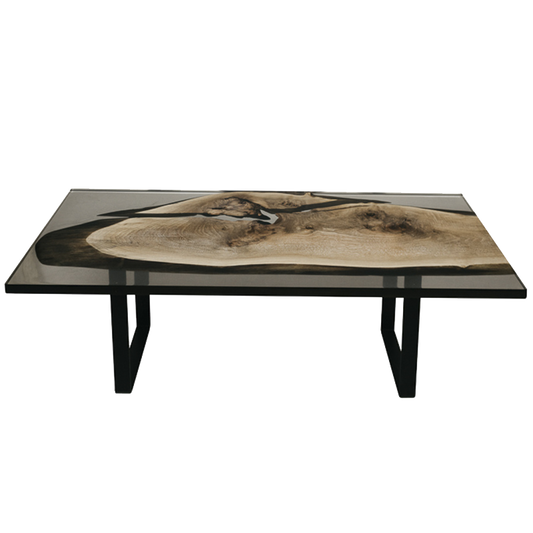 Mesa de Centro em Madeira Natural de Carvalho Francês, com resina e pés em metal...