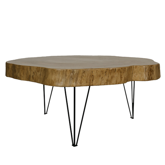 Mesa de Centro em Madeira Natural de Deodara com pés em metal