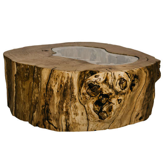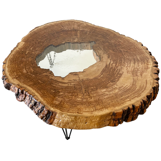 Mesa de Centro em Madeira Natural de Oliveira com Resina