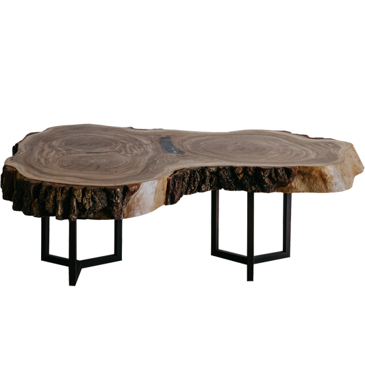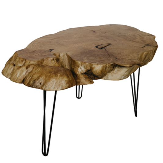 Mesa de Centro em Madeira Natural de Ulmeiro com pés em metal preto