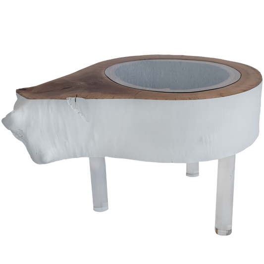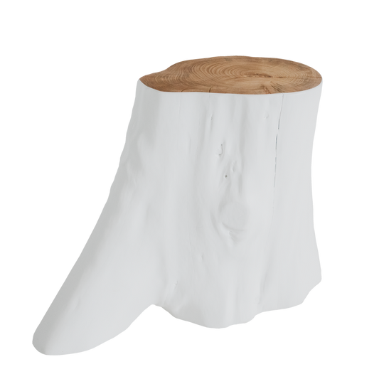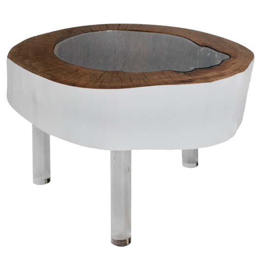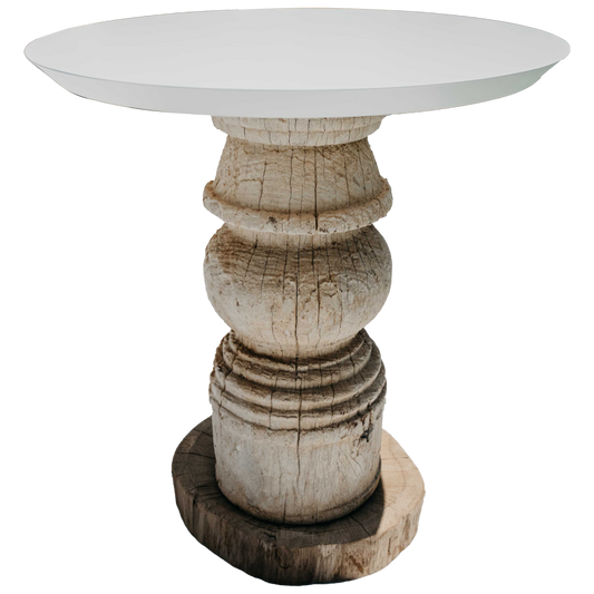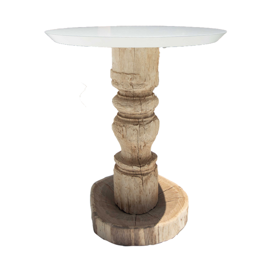 Mesa de Apoio com base em Teca e tampo lacado a branco
